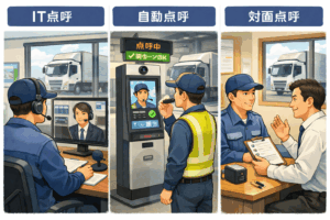 運送会社では、ドライバーが運転する前後に「点呼(てんこ)」という確認を必ず行っています。